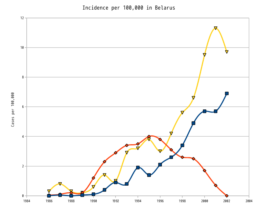 事故後に、特に汚染がひどかったベラルーシ、ウクライナ、ロシアの一部地域において、事故当時子どもだった人々の間で、甲状腺がんの発生率が著しく増加したことが、WHO(世界保健機関)などの国際的な調査によって確認されています。これは、爆発によって放出された放射性物質の一つであるヨウ素131(甲状腺に集まりやすい性質を持ち、放射能がなくなるまでの期間が比較的短い)が、大気や、汚染された牧草を食べた牛の乳などを通じて、子どもたちの体内に取り込まれたことが主な原因と考えられています。事故後の早い段階で安定ヨウ素剤(甲状腺への放射性ヨウ素の取り込みを抑える薬)を服用していれば、このリスクは低減できた可能性があり、情報公開の遅れが被害を拡大させた側面もあります。